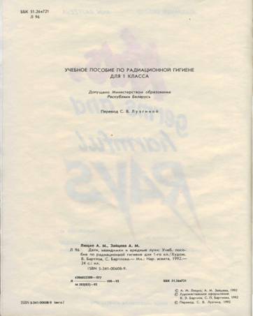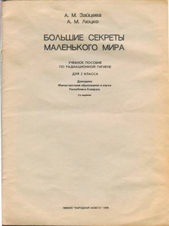 Вучэбны дапаможнік па радыяцыйнай бяспеке для 2-га класа. Аўтары: А.М.Люцко, А.М. Зайцава.