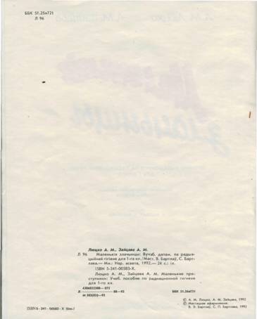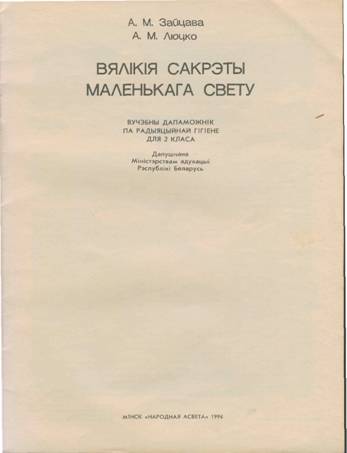Вучэбны дапаможнік па радыяцыйнай гігіене для 1 класа. Аўтары: А.М. Зайцава, А.М. Люцко